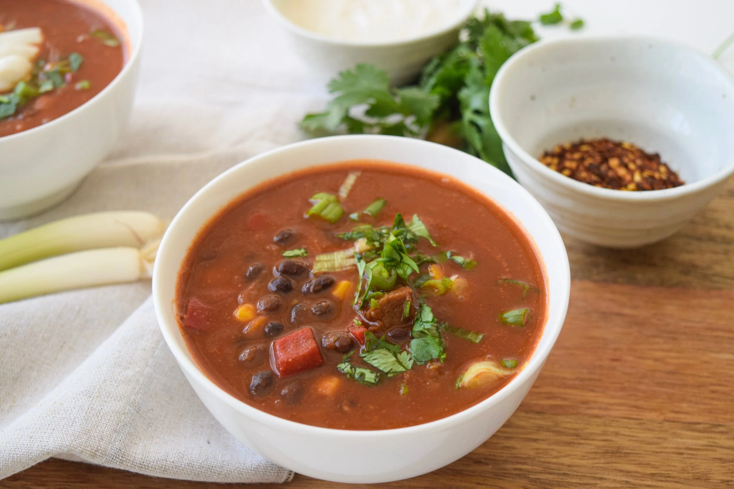 Optional garnish: chopped cilantro, sliced avocado, tortilla chips, vegan sour cream, green onion, grated vegan cheese etc.